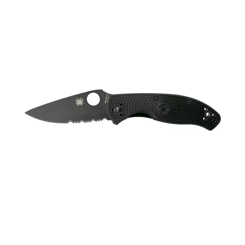 Le Spyderco Tenacious Lightweight Black C122SBBK FRN serrated est un couteau de poche idéal pour une utilisation quotidienne avec une lame de 10.8 cm et en acier 8Cr13MoV.