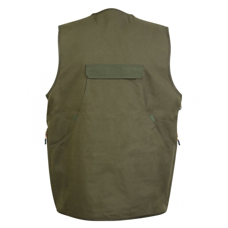 Double carnier. Fabriqué en résistant tissu mélange de coton avec renforts Ripstop. Doublure mesh respirante. 6 rangées de cartouchières. 2 poches extérieures zippées et 1 poche intérieure pour documentation.
