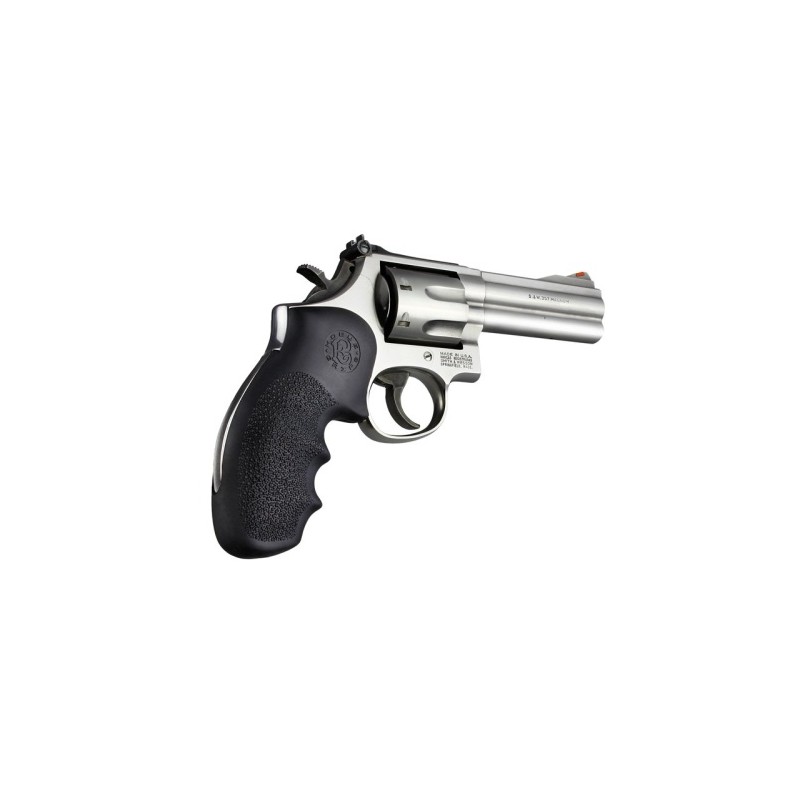 Poignée en caoutchouc Houge pour revolvers S&W avec carcasse K/L, crosse ronde avec empreinte pour les doigts. Le manche Hogue est composé d'un mélange de caoutchouc synthétique et est donc résistant aux huiles et aux graisses. Même après des années, ce mélange spécial ne durcit pas.