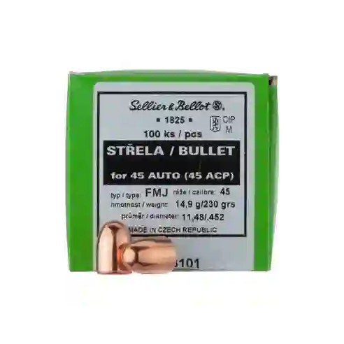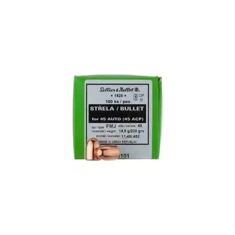 Ogives Sellier Bellot cal. 45 auto 14.9g 230gr FMJ par 100
