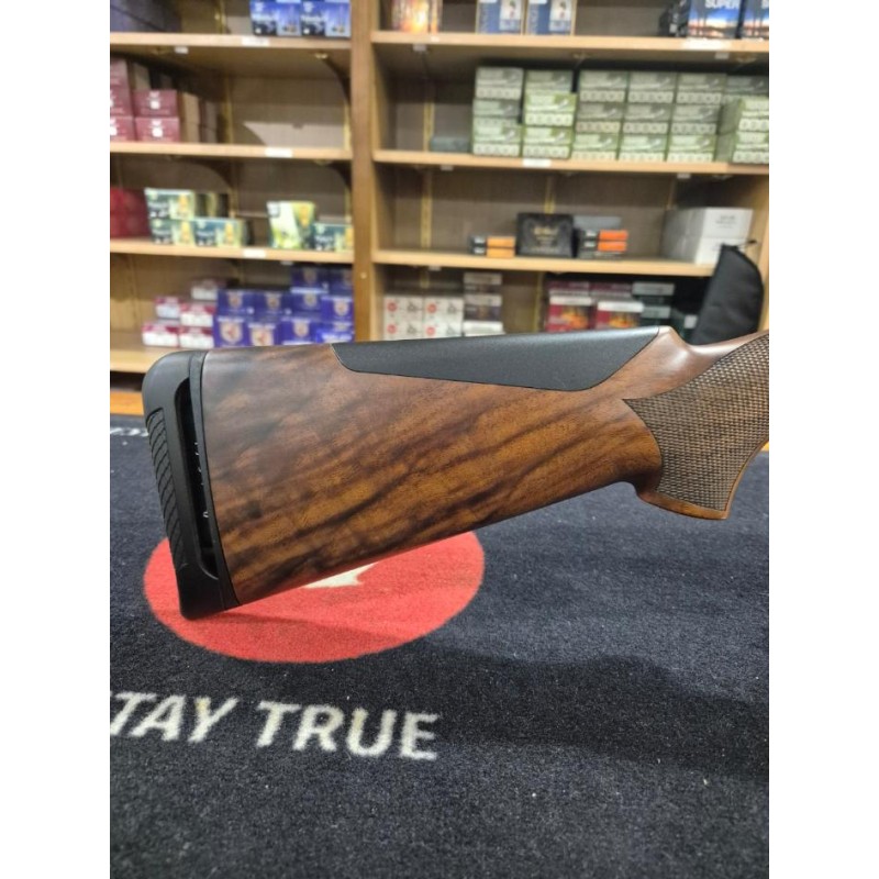 Calibre: Cal. 20 Crosse: En noyer avec finition WoodFX et avec le nouveau système Progressive Comfort Plaque de couche: En polyuréthane spécial Chambrage: 76 magnum Mécanique: Semi-automatique inertiel Benelli avec groupe de détente à géométrie variable Crosse et devant: Carcasse nickelée, groupe obturateur usiné à partir d'un tréfilé et chromé Busc: En polyuréthane spécial Longueur crosse mesurée depuis la détente: 365 mm var. drt / gche, modifiable à 350 mm +/- 2 mm, avec crosse spécifique et kit Progressive Comfort ou 380 mm +/- 2 mm avec plaque de couche longue Pente au busc: 35 ± 1 mm Pente au talon: 60 ± 1 mm, réglable à 45, 50, 55, 65 POIDS 2.650 KGS